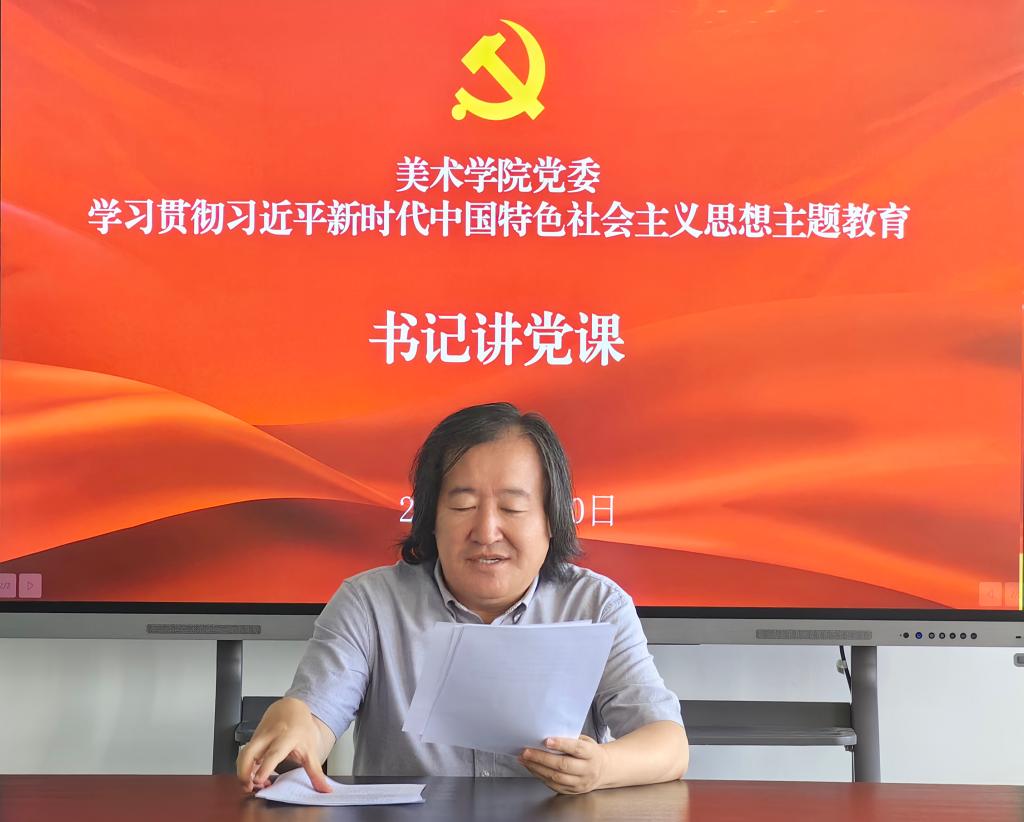 6月30日下午,为扎实深入推动习近平新时代中国特色社会主义思想主题教育走深走实,色情app 党委组织开展“学习贯彻习近平新时代中国特色社会主义思想主题教育”书记讲党课活动。院党委书记王耀中以《坚定文化自信 传承中华优秀传统文化——创作出新时代人民群众欣赏的美术与书法佳作》为题,为教工第一党支部和学生第一党支部党员,上了一堂生动深刻的党课。