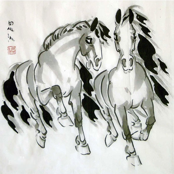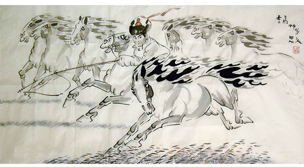 思沁毕力格图很尊重中国绘画的传统,特别注意研究线的表现力,注意画面虚实、黑白的处理。他的思想很开放,对于西方的现代绘画语言、绘画观念,他潜心研究,努力探索。但对于自己要走的路,又有冷静和明确的认识。“文革”以后,他开始认真研究蒙古族的历史、文化和风俗。