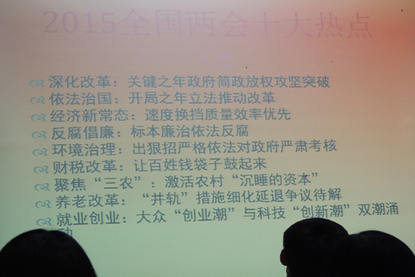 本次活动中,团支书为大家介绍了关于“四进四信”的提出背景和主要内容,同学们就“进支部、进社团、进网络、进团课”各抒己见,加深了对“四进”的深刻认识;随后同学们还学习了关于两会精神,并通过相关视频,明晰了同学们共筑中国梦所肩负的重要责任。