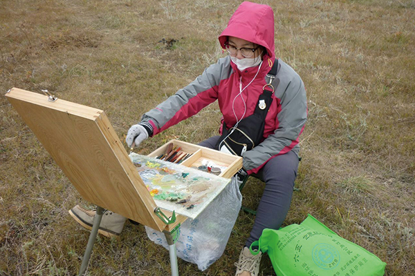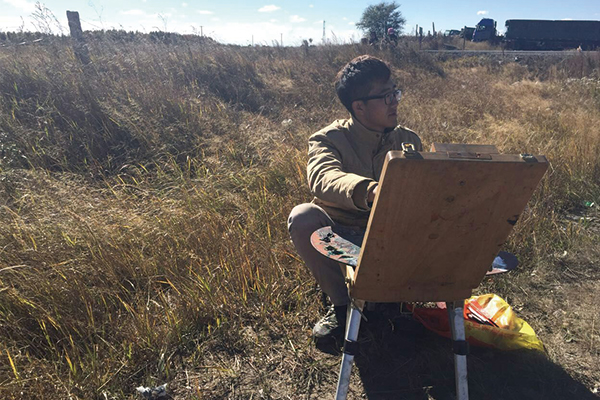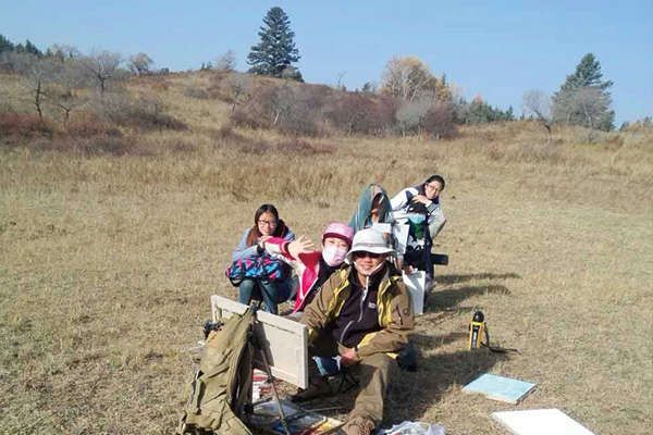 恨的是大克旗变化多端的天气是多么不留情面,中午还艳阳高照,下午就寒风凛冽。 这样的极端实在抵挡不住。虽然这样,每天我们个个都武装的严严实实,还是一如既往的上山画画,不论雨雪风霜,这种精神值得鼓励,为大家点个赞,更为我们敬爱的老师点个赞。不管老师写生多么晚回来都会给我们一一点评画,指出画中得优点及不足的地方。对于每个人的色彩风景,在大家的努力和老师的指导下都有很大的收获。在写生之余,想必和大家最开心的事就是在一起等待美味可口的饭菜,看到大家狼吞虎咽的吃着,感觉大家在一起真好。