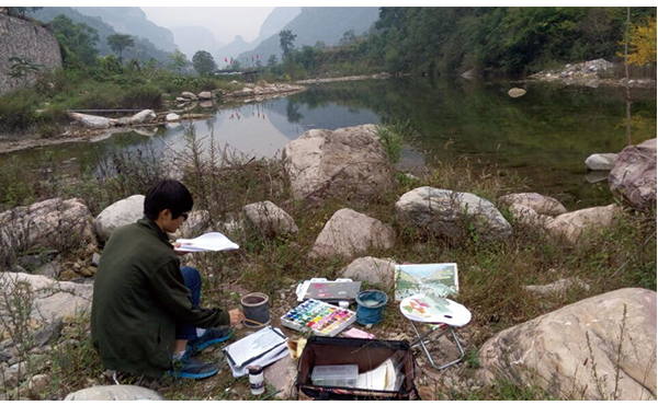 这次我们的美术写生实习被安排在太行山石板岩,一个风景很优美,同时又很有灵性的地方。写生给我们留下了许多美好的回忆,不仅仅在我心中,也深深印在所有参加写生充满希望的年轻人心里。
