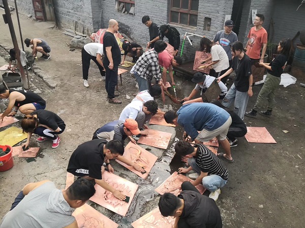 雕塑系郑天则老师带领2017级、2018级雕塑班前往河北省易县宏生金属錾刻艺术实践基地进行为期14天专业实习。