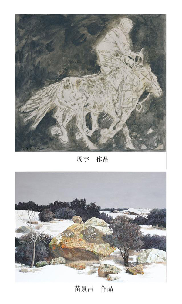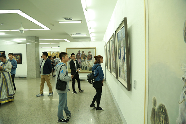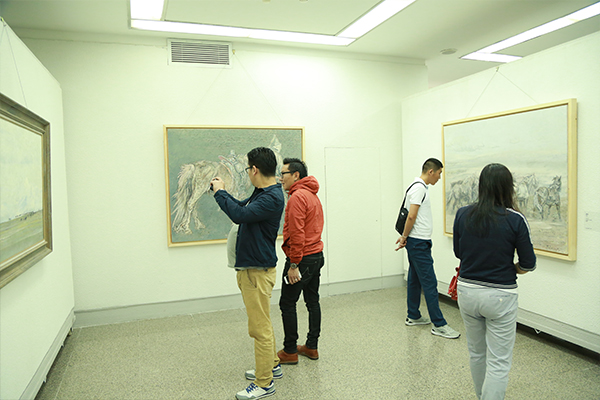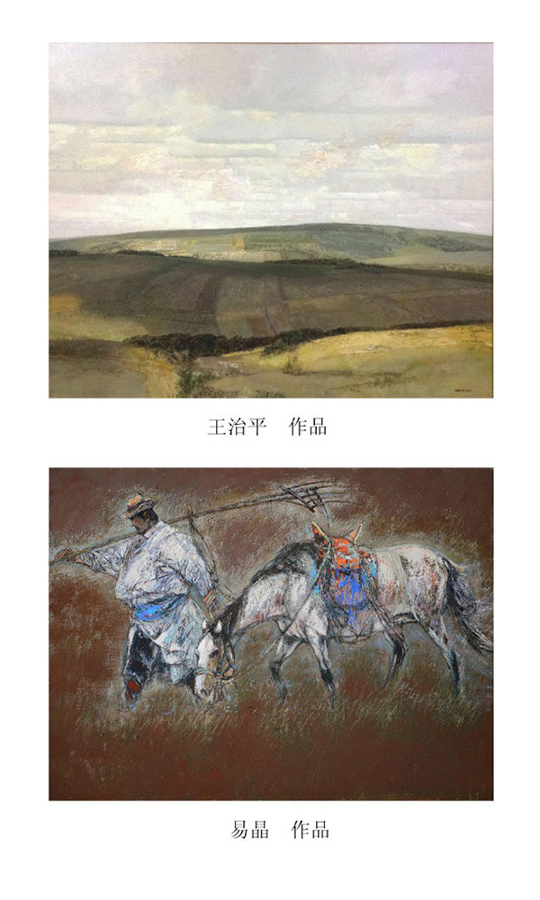 展出的载数量约每人十五幅左右,因为有人还在上班工作,能完全由自己掌握的时间不是很充足,完成作品少些。在内容方面,画的都是内蒙古地区的题材。在艺术语言方面,是以写实为主,但不是细画。大写意与工笔型的油画都可以是写实的,都可以成为栩栩如生的作品。