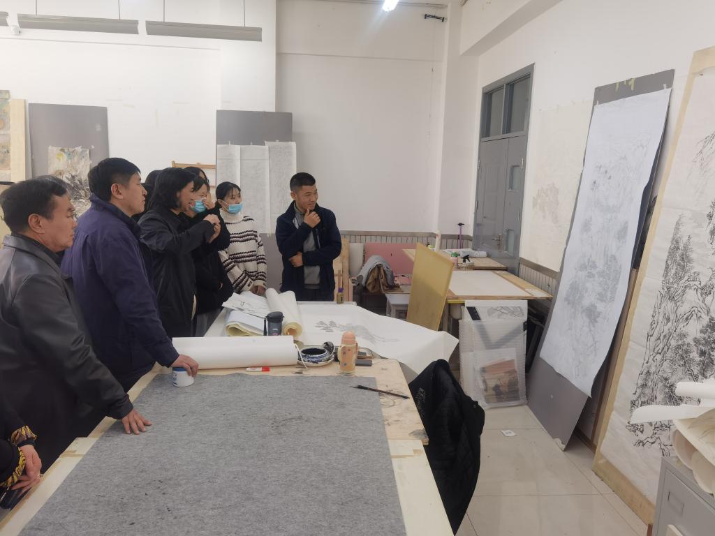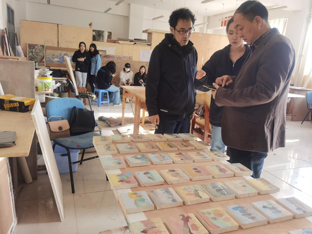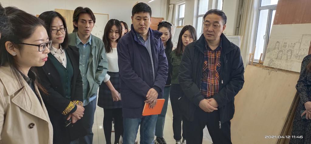 领导和各位导师对作品的创作进度,具体构思、构图,作品表达的内在含义都做了深入细致的了解,并对部分学生的作品提出了指导性的修改意见。