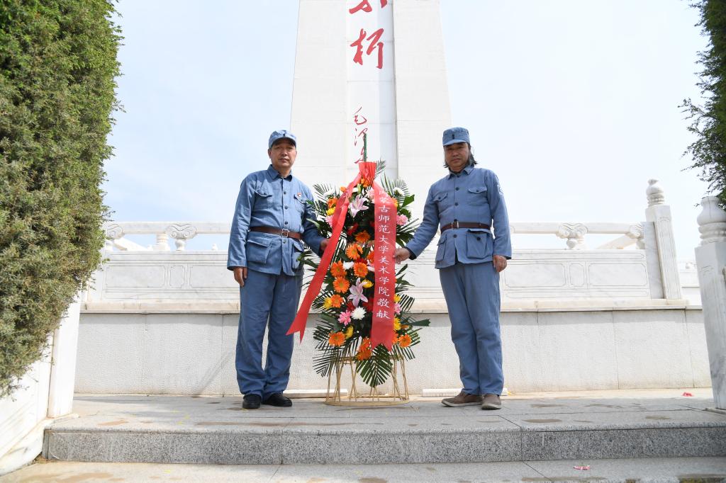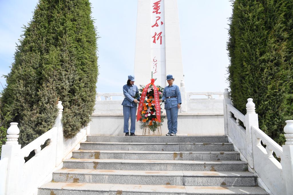 党委书记乌力吉和院长陈晗晟迈步上前整理花篮缎带,全体党员面向烈士纪念碑默哀,环绕烈士纪念碑瞻仰缅怀革命英烈。