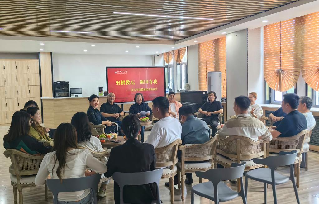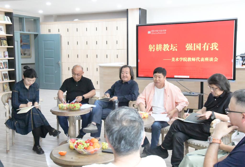 在美术楼一楼艺术沙龙召开以“躬耕教坛 强国有我”为主题的教师代表座谈会。党委书记王耀中,院长胡日查,党委副书记、副院长云双庆,副院长刘永平、张晓霞和部分系主任、具有博士学位教师代表出席座谈会,会议由胡日查主持。
